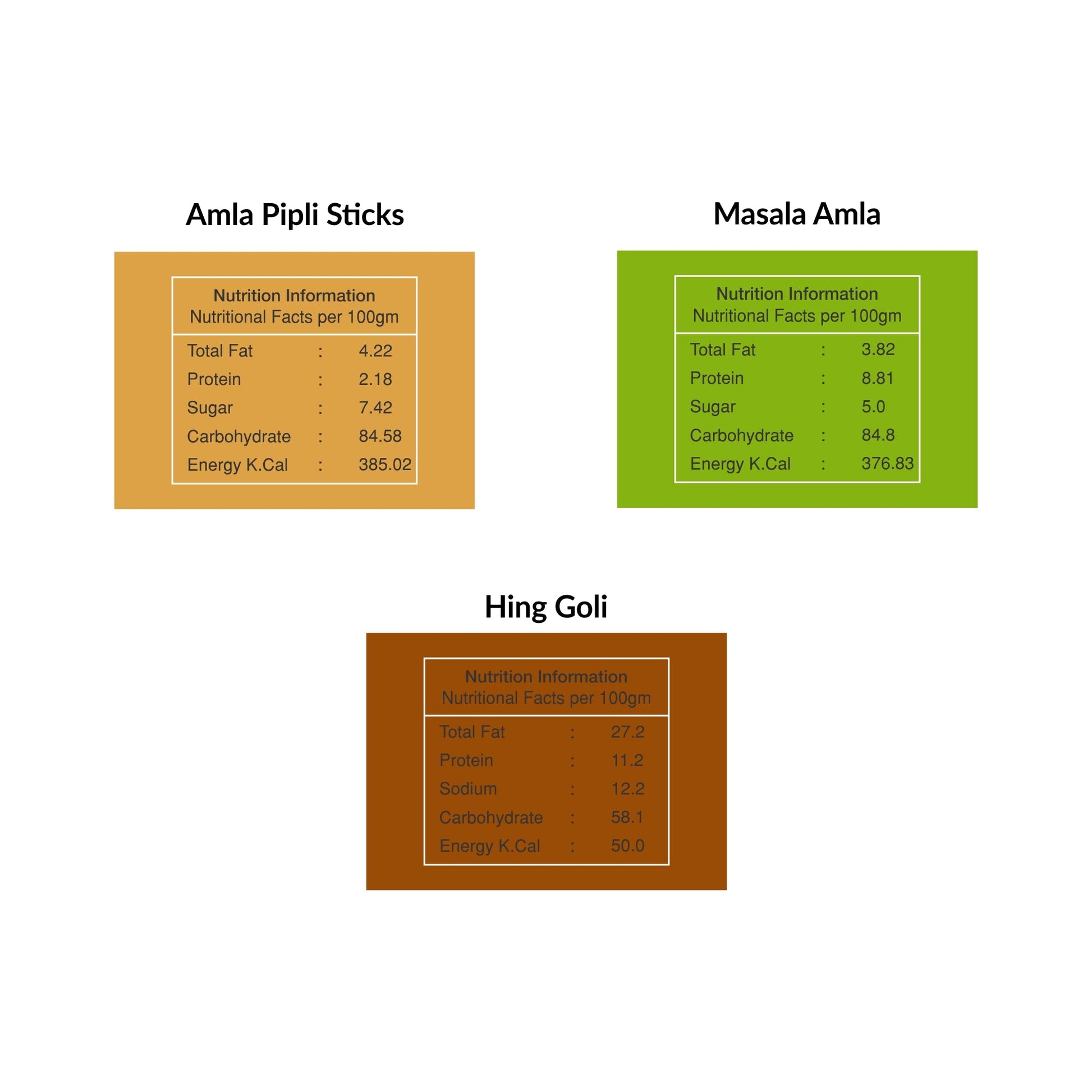 🎁 In This Pack: Pipli, Hing Goli, Masala Amla (90 g Each)